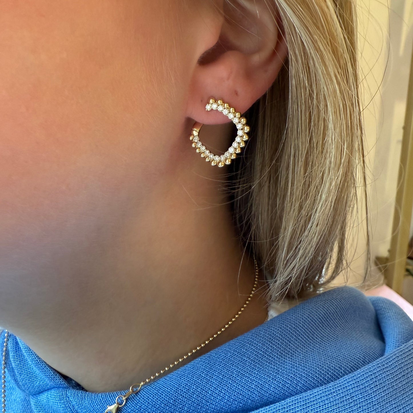 1. Graduated Gold Beaded Pave Diamond Hoops