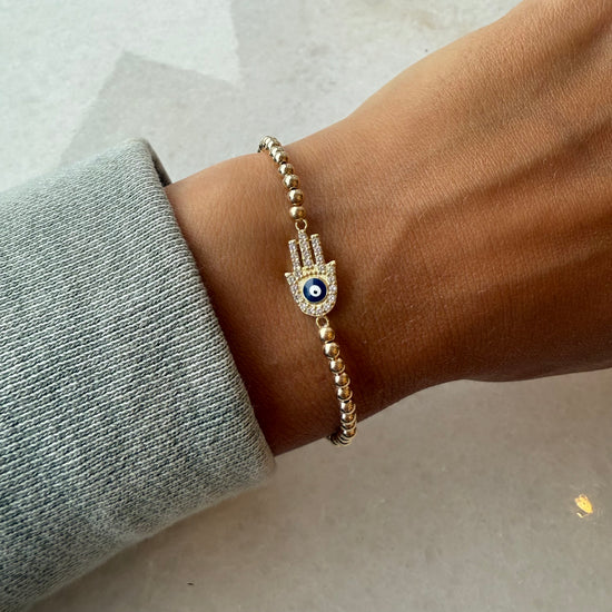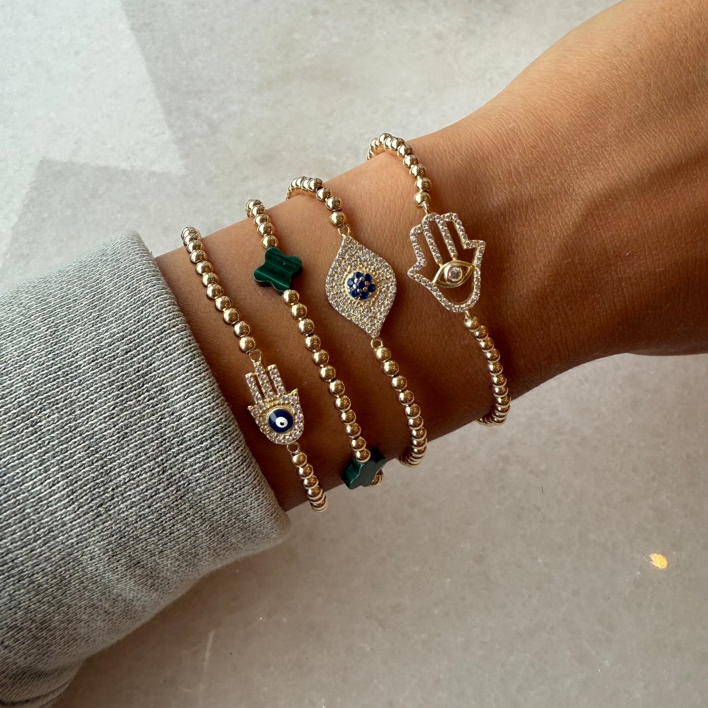 9. 4 MM Stretch Ball Stretch Ball Bracelet with Bezel Crystal Bar