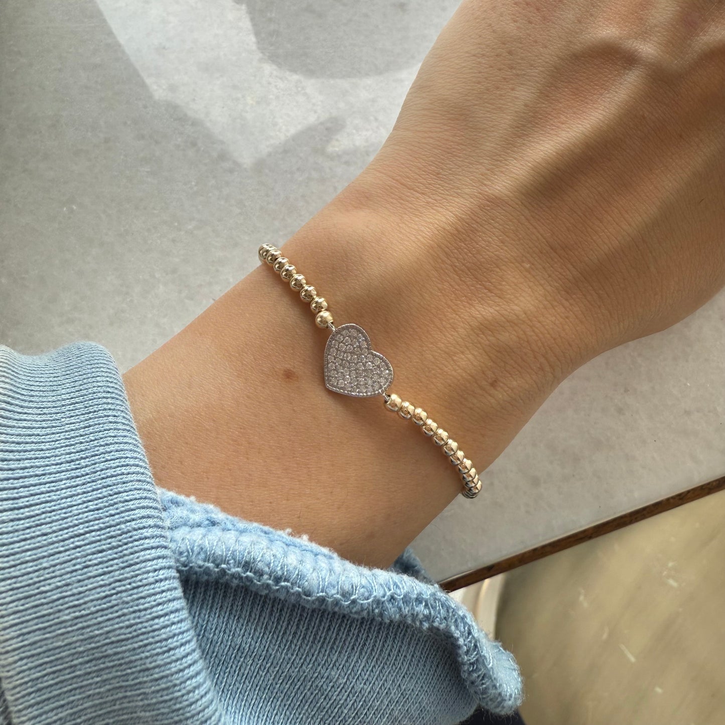 13. 3 mm Crystal Open Heart on Ball Bracelet