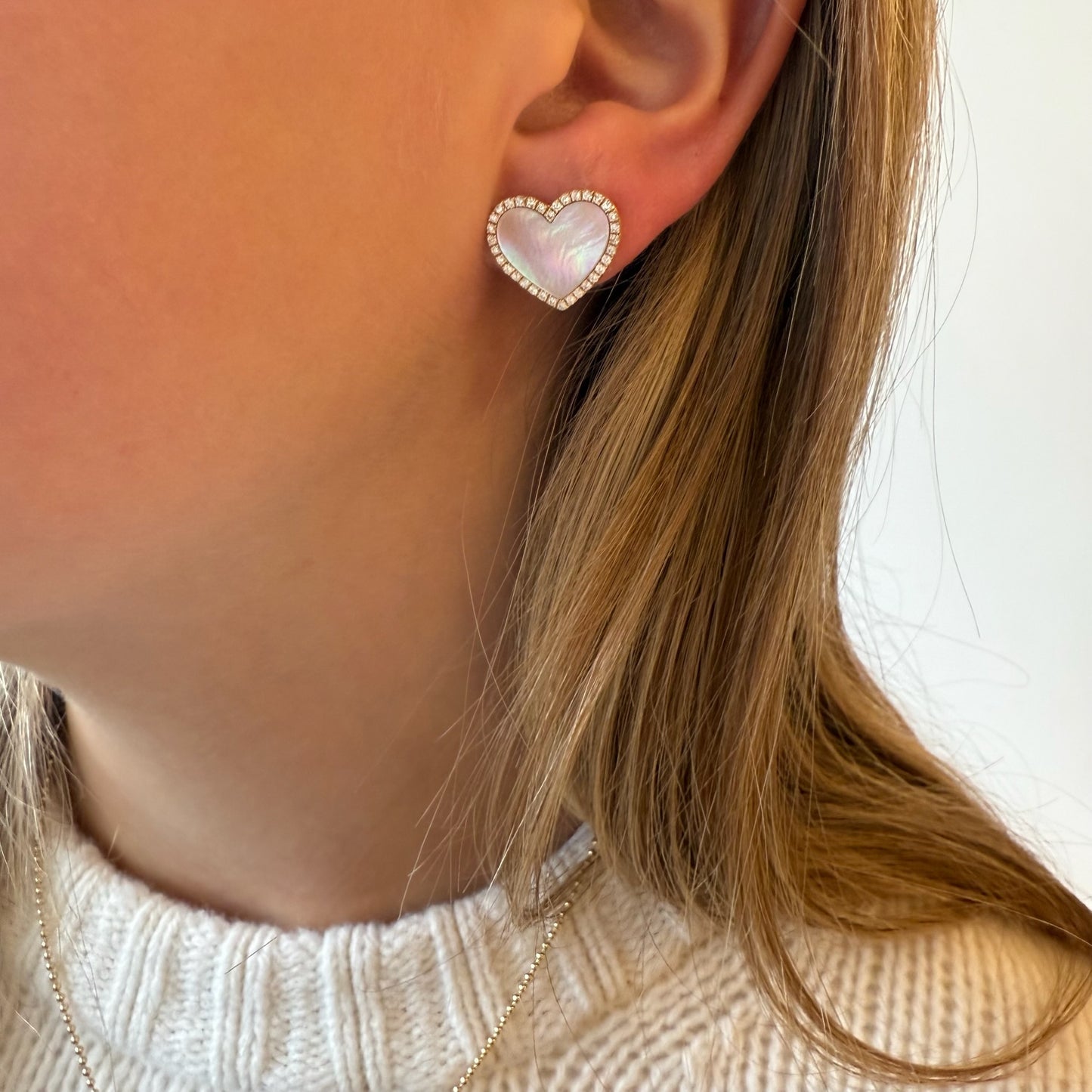 Large Pink Mother of Pearl Heart & Diamond Halo Earrings
