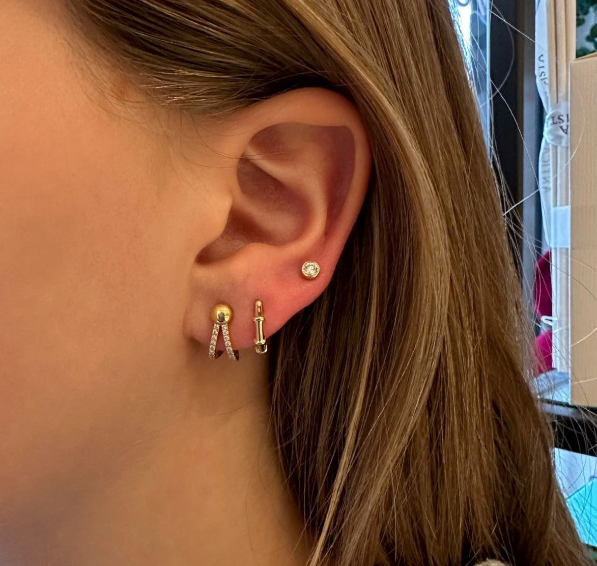 2 Line Diamond Cage Earrings on Gold Ball Post