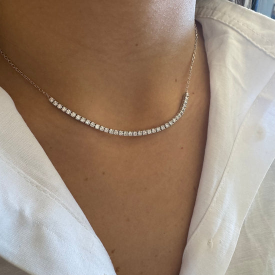 Sleek and sophisticated, this Lab Diamond Bar Necklace is a timeless statement of elegance. Featuring 36 lab-grown diamonds, this stunning piece radiates brilliance with every movement. It’s the perfect versatile addition to any jewelry collection.