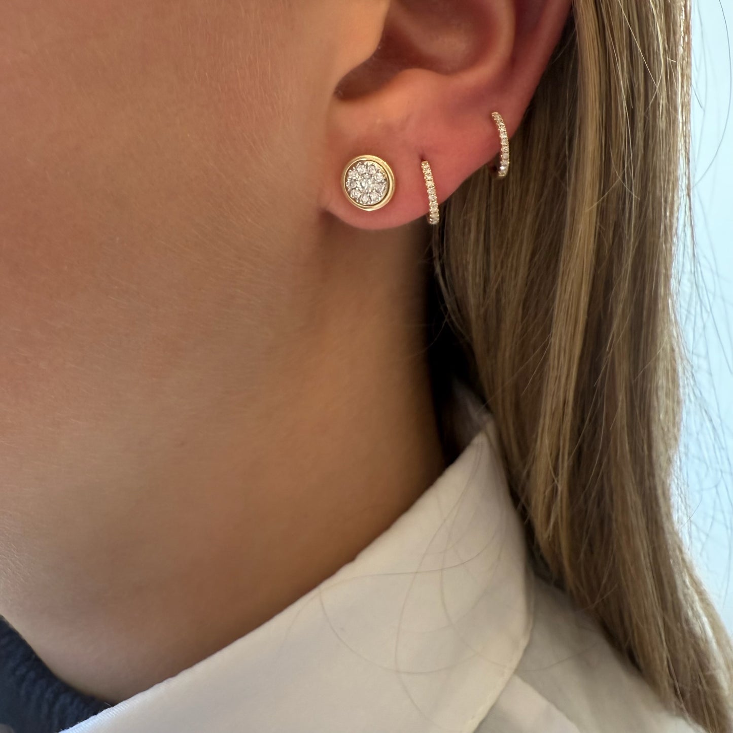 Round Diamond Cluster & Gold Bezel Earrings